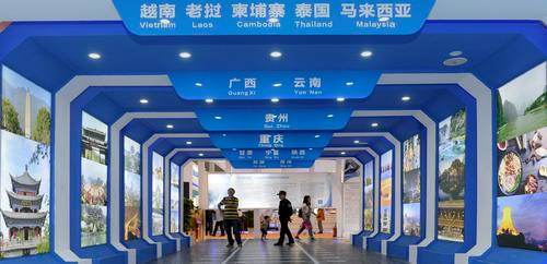 ▲在西洽会中新(重庆)战略性互联互通示范项目展台,陆海新通道沿线人文风景在此展示。记者 张锦辉 罗斌 摄