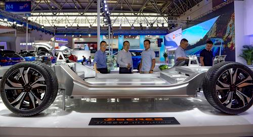 ▲在西洽会小康集团展台,观展者被其电动平台所吸引。记者 张锦辉 罗斌 摄